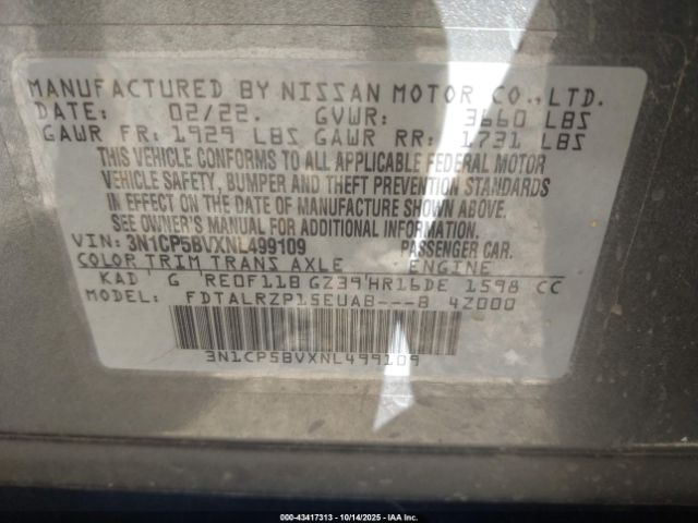 | VIN : 3N1CP5BVXNL499109 |