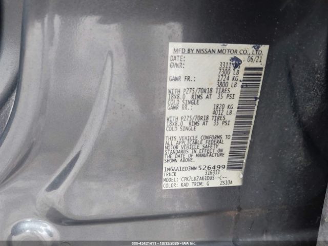 | VIN : 1N6AA1ED3MN526499 |