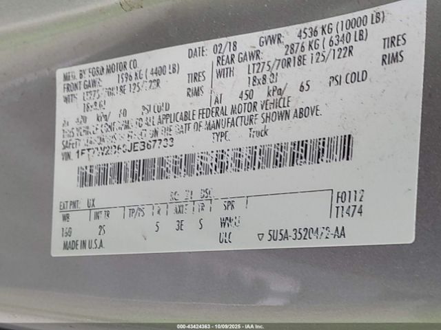 | VIN : 1FT7W2B60JEB67733 |