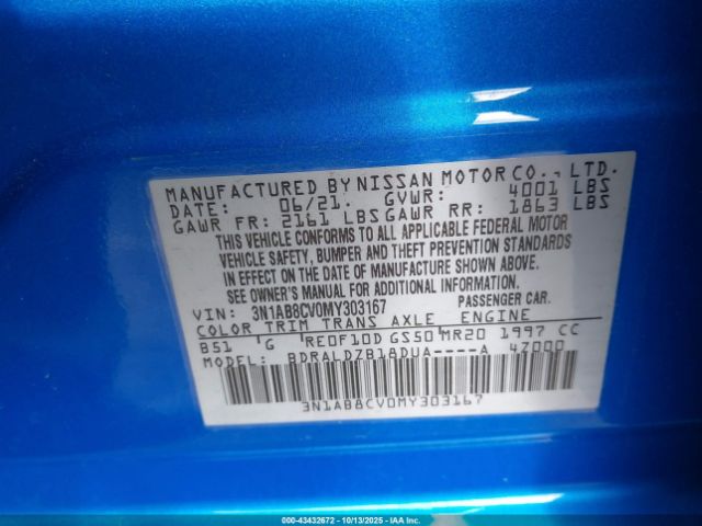 | VIN : 3N1AB8CV0MY303167 |