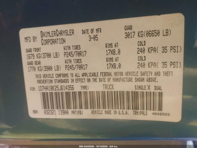 | VIN : 1D7HA18K25J614356 |