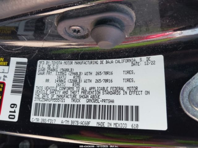| VIN : 3TMCZ5AN1PM555721 |