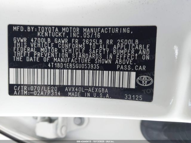 | VIN : 4T1BD1EB5GU053935 |