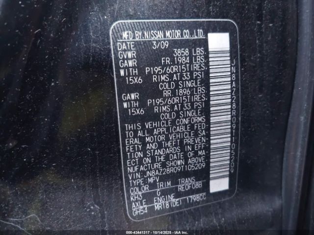 | VIN : JN8AZ28R09T105209 |