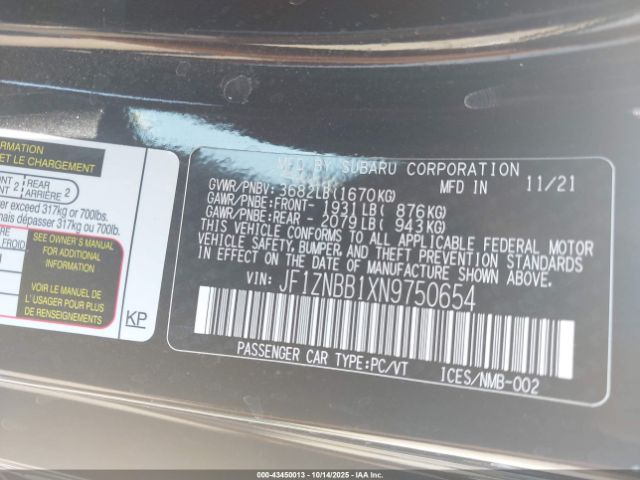 | VIN : JF1ZNBB1XN9750654 |