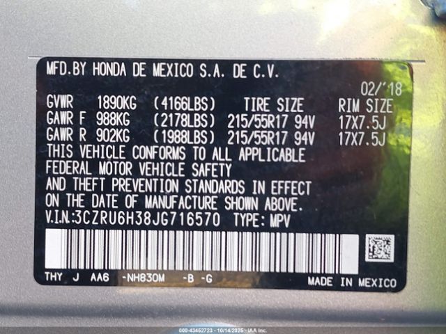 | VIN : 3CZRU6H38JG716570 |