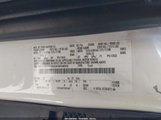 | VIN : 1FTYR1YG0GKB54092 |