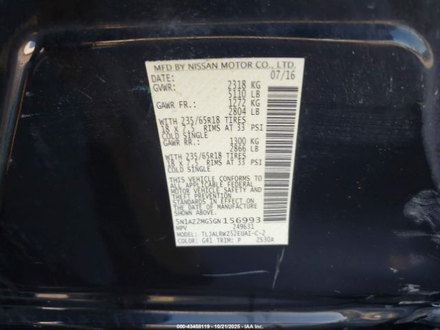 | VIN : 5N1AZ2MG5GN156993 |
