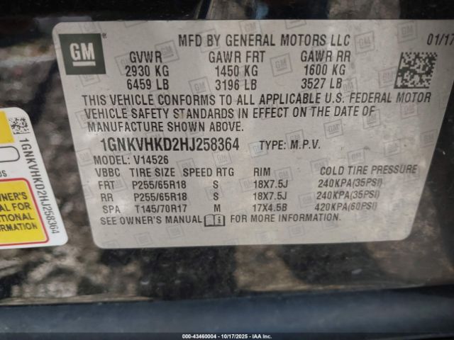 | VIN : 1GNKVHKD2HJ258364 |
