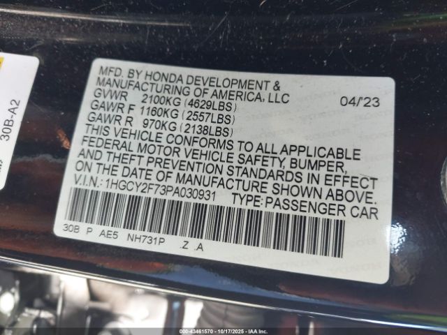 | VIN : 1HGCY2F73PA030931 |