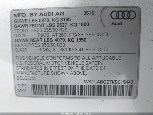 | VIN : WA1LABGE7KB015443 |