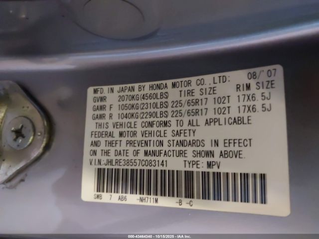 | VIN : JHLRE38557C083141 |