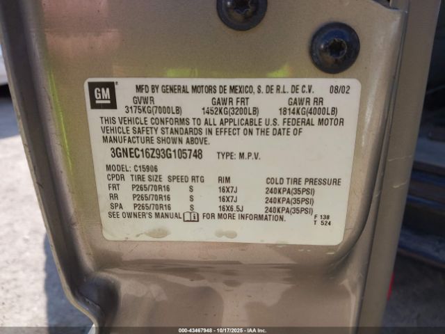 | VIN : 3GNEC16Z93G105748 |