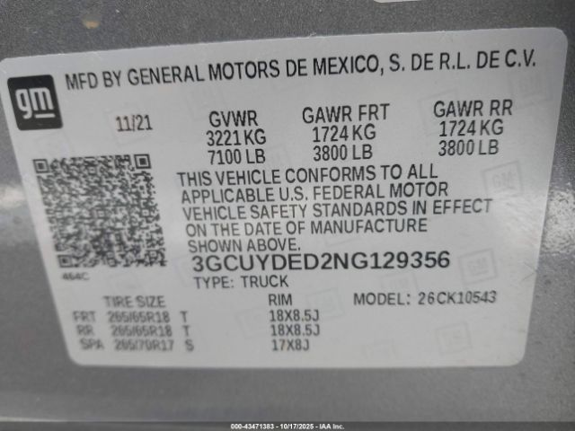 | VIN : 3GCUYDED2NG129356 |