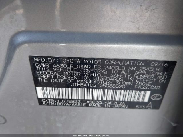 | VIN : JTHBA1D21G5038520 |