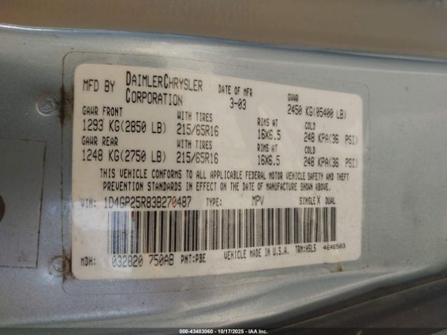 | VIN : 1D4GP25R83B270487 |