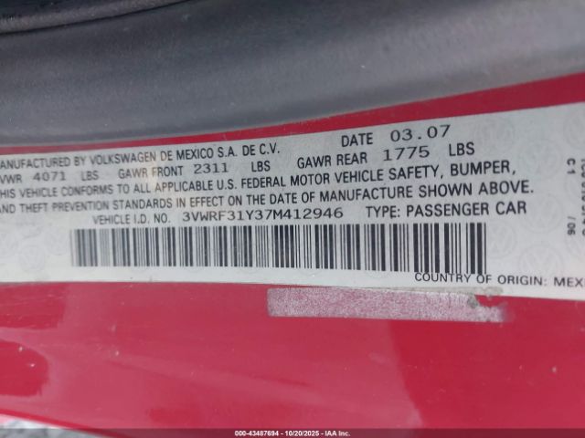 | VIN : 3VWRF31Y37M412946 |