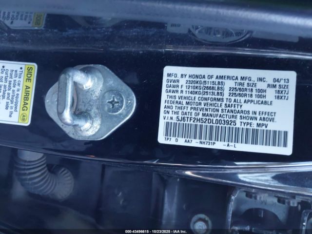 | VIN : 5J6TF2H52DL003925 |