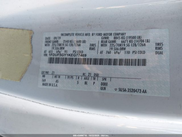 | VIN : 1FDUF5GY1KEG77469 |