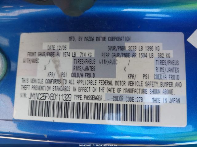 | VIN : JM1NC25FX60111329 |