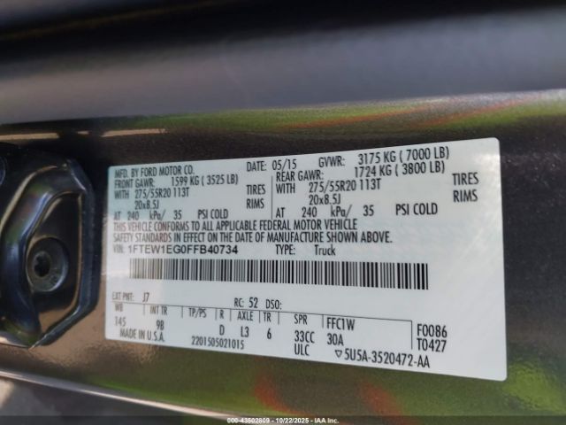 | VIN : 1FTEW1EG0FFB40734 |