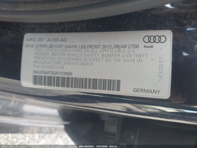 | VIN : WAUF8AFC8JN103985 |