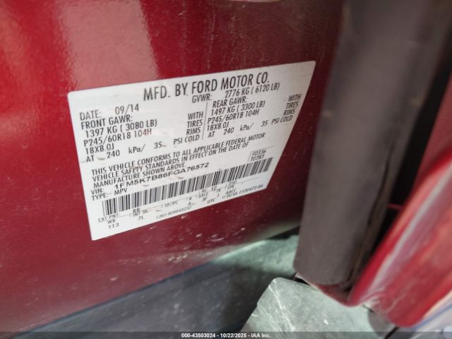| VIN : 1FM5K7B86FGA76572 |