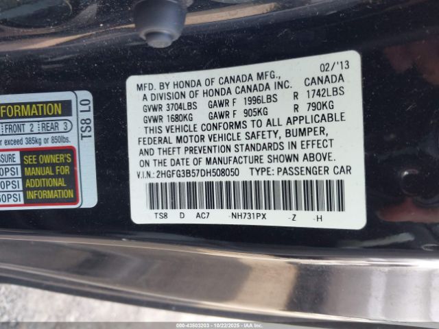 | VIN : 2HGFG3B57DH508050 |