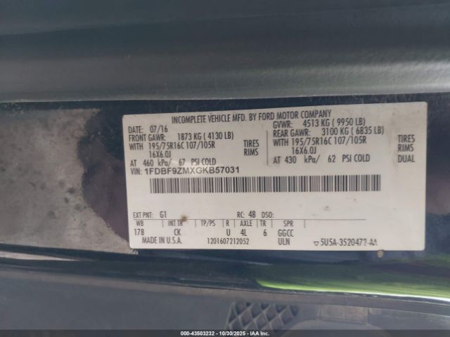 | VIN : 1FDBF9ZMXGKB57031 |