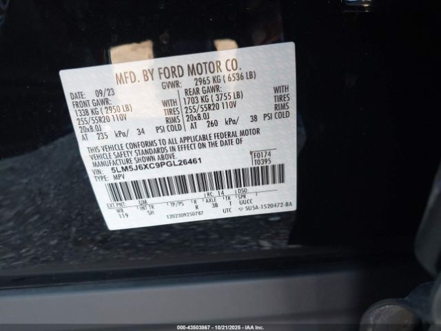 | VIN : 5LM5J6XC9PGL26461 |