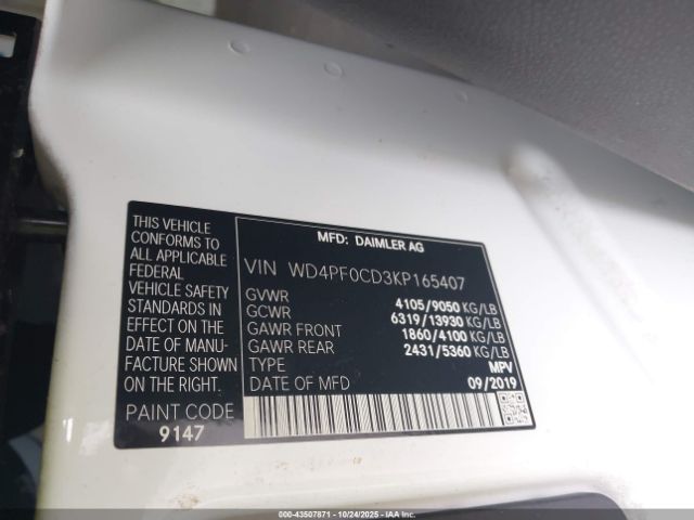 | VIN : WD4PF0CD3KP165407 |