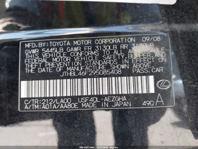 | VIN : JTHBL46F295085408 |