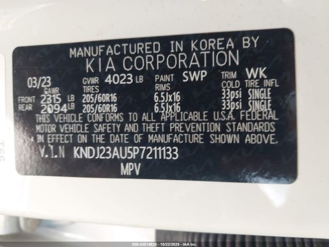 | VIN : KNDJ23AU5P7211133 |