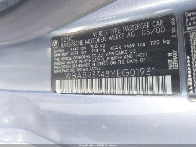 | VIN : WBABR3348YEG01931 |