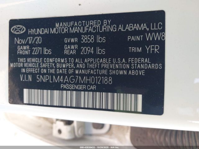 | VIN : 5NPLM4AG7MH012188 |