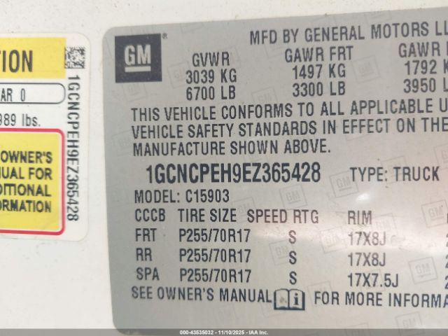 | VIN : 1GCNCPEH9EZ365428 |
