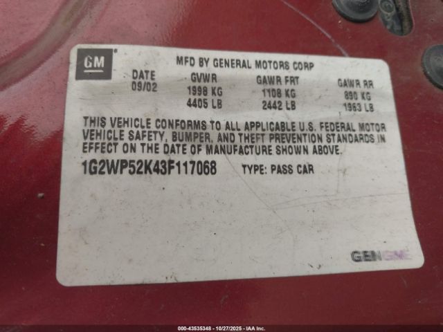 | VIN : 1G2WP52K43F117068 |