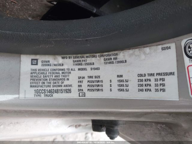 | VIN : 1GCCS146248151926 |