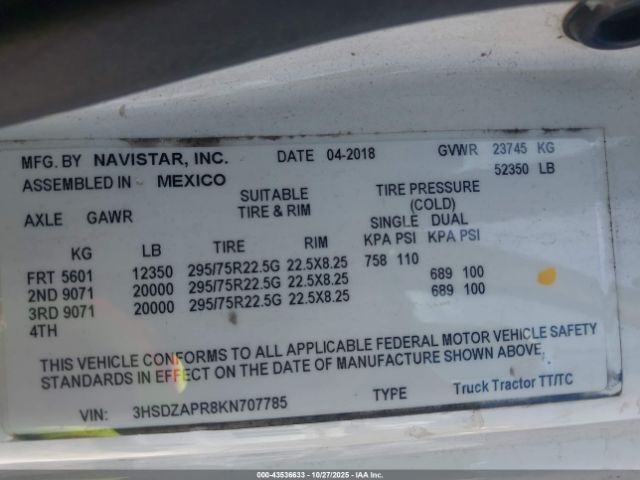 | VIN : 3HSDZAPR8KN707785 |