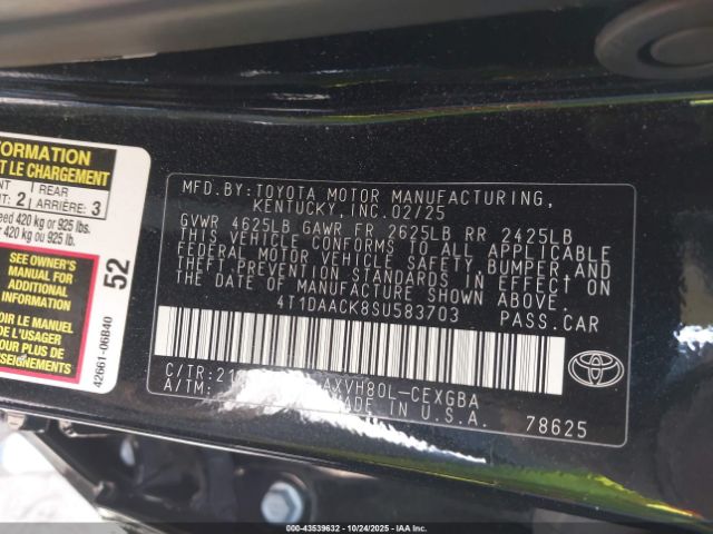 | VIN : 4T1DAACK8SU583703 |