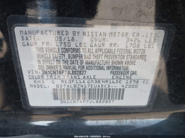 | VIN : 3N1CN7AP7JL882827 |