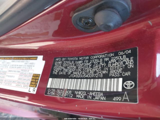 | VIN : JTDKB20U540097218 |