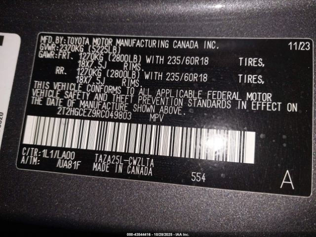 | VIN : 2T2HGCEZ9RC049803 |