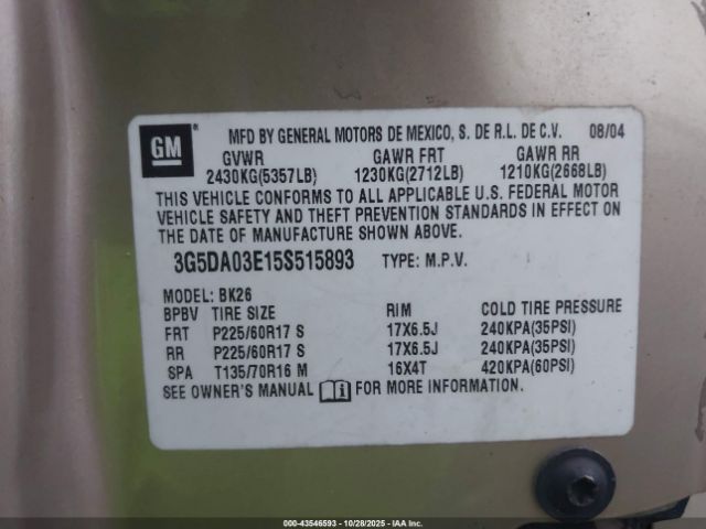 | VIN : 3G5DA03E15S515893 |