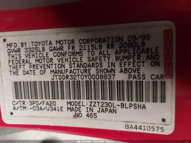 | VIN : JTDDR32T0Y0008837 |