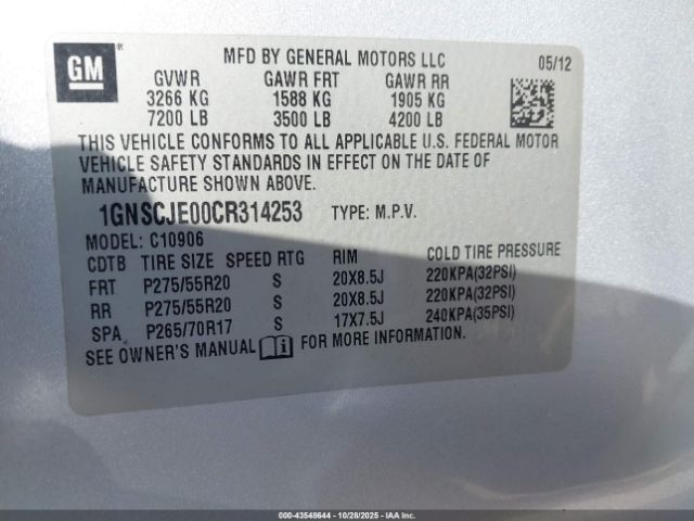 | VIN : 1GNSCJE00CR314253 |