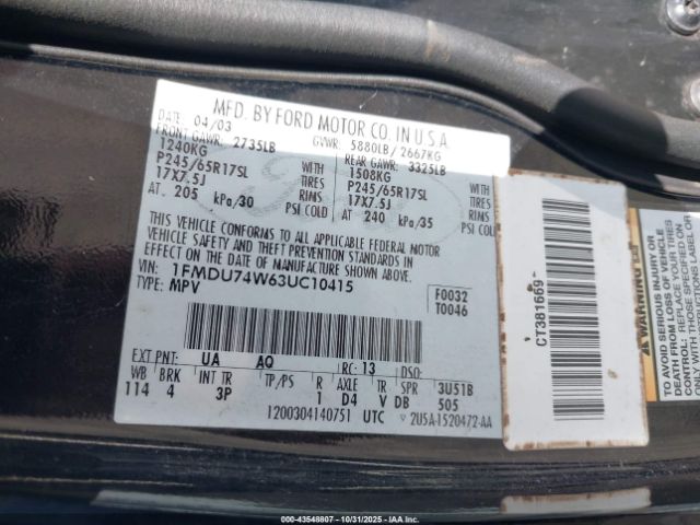| VIN : 1FMDU74W63UC10415 |