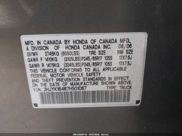 | VIN : 2HJYK16467H501067 |