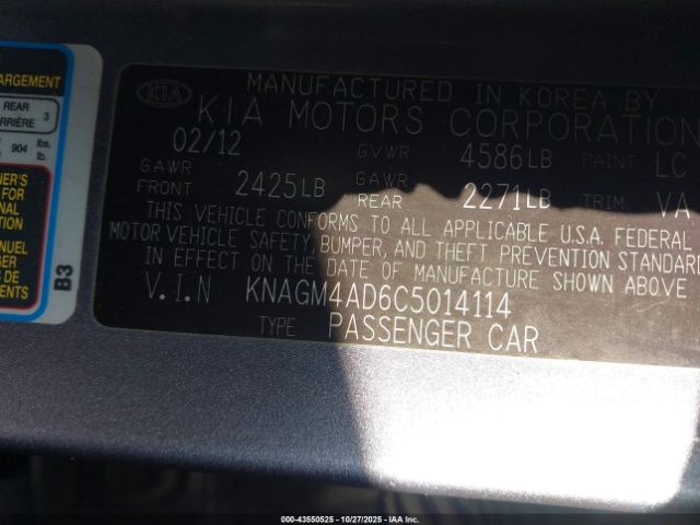 | VIN : KNAGM4AD6C5014114 |