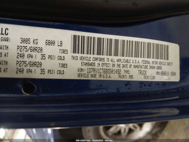 | VIN : 1D7RV1CT6BS501492 |
